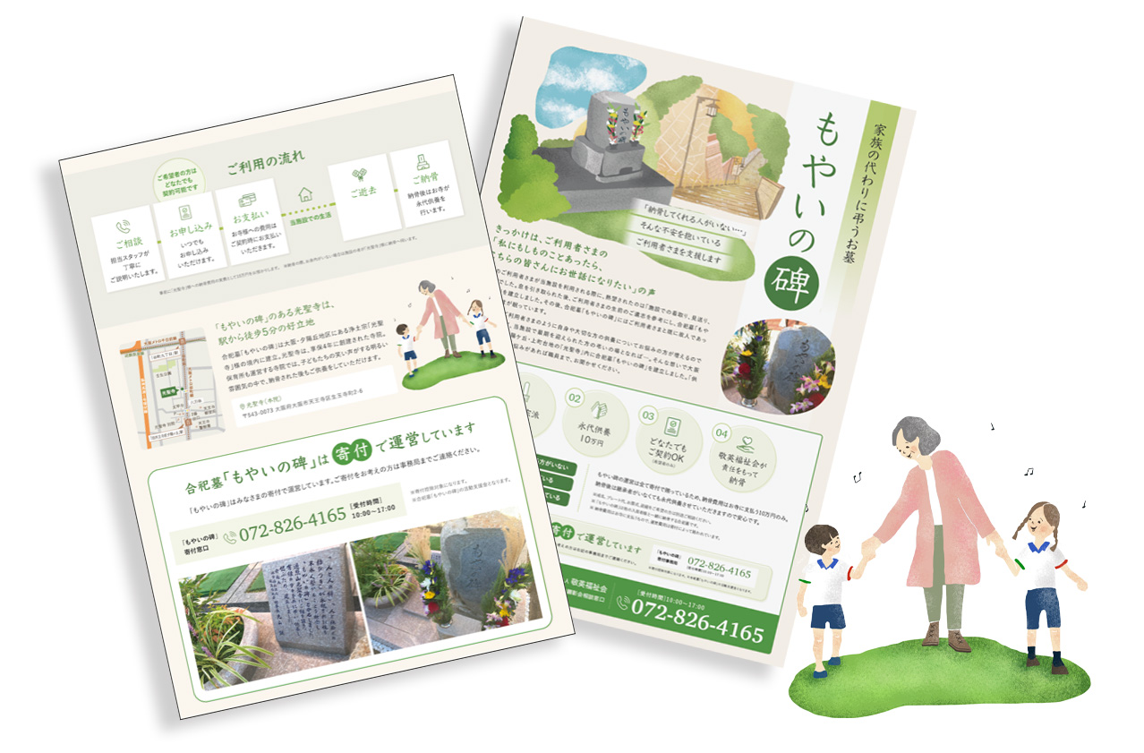 ④大阪府にある由緒あるお寺のパンフレットの挿絵イラスト